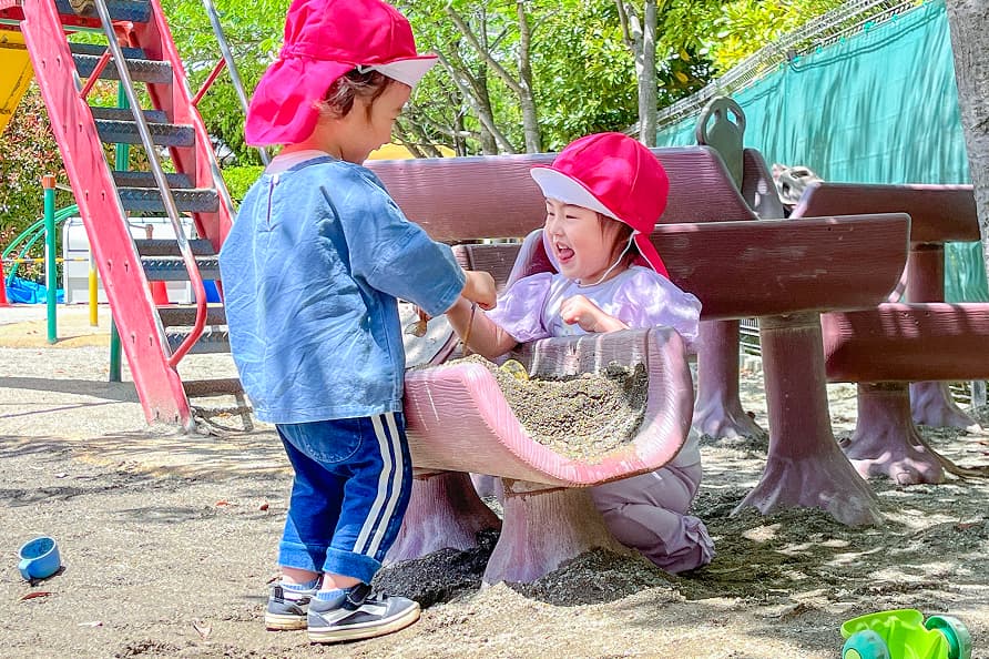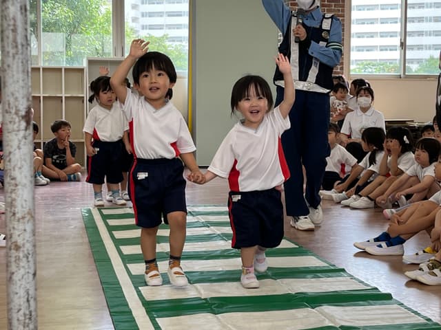 朝のごあいさつから始まり、遊びや学びを通じてのびのび過ごす子どもたちの一日をご紹介しています。